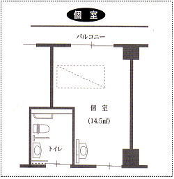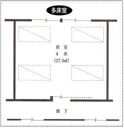 | ●ご入居ご希望の方は個室(20部屋)、4人部屋(52床)のお好みをお選びいただけます。 |